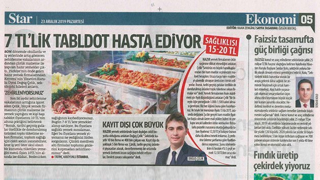 Keyveni Kurumsal Hazır Yemek Yönetim Kurulu Üyesi Doğuş Çelik, kayıt dışı firmaların neden olduğu ve son dönemde sık sık gündeme gelen toplu gıda zehirlenmelerini Star Gazetesi’ne […]